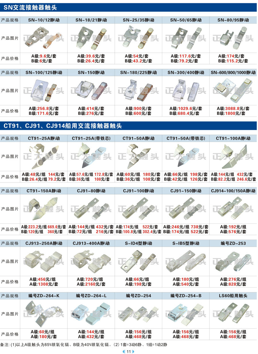 SN、CT91、CJ91、CJ914船用交流接触器触头