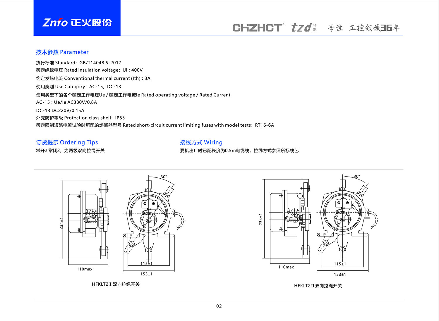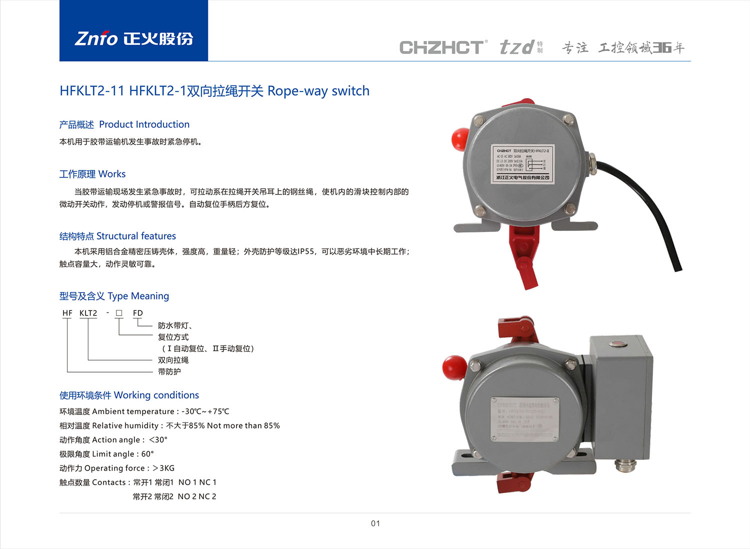 HFKLT2双向拉绳开关 _拉绳开关_行程/微动/跑偏/拉绳/超速_工业控制与保护_产品中心_ky开元电气股份有限公司
