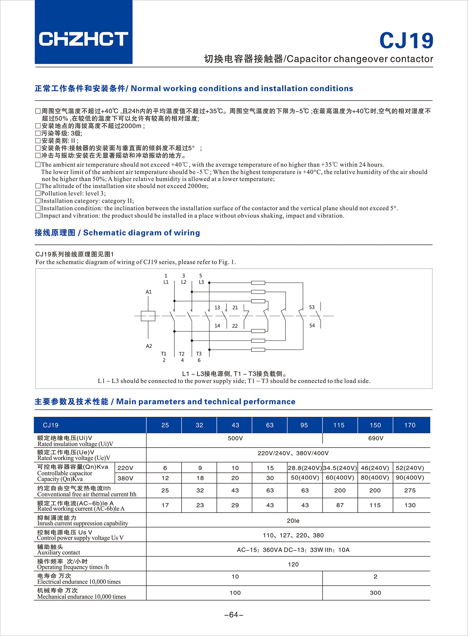 CJ19切换电容器接触器产品说明书