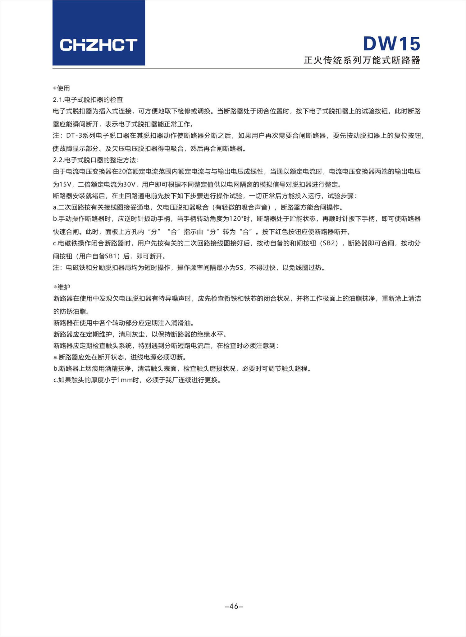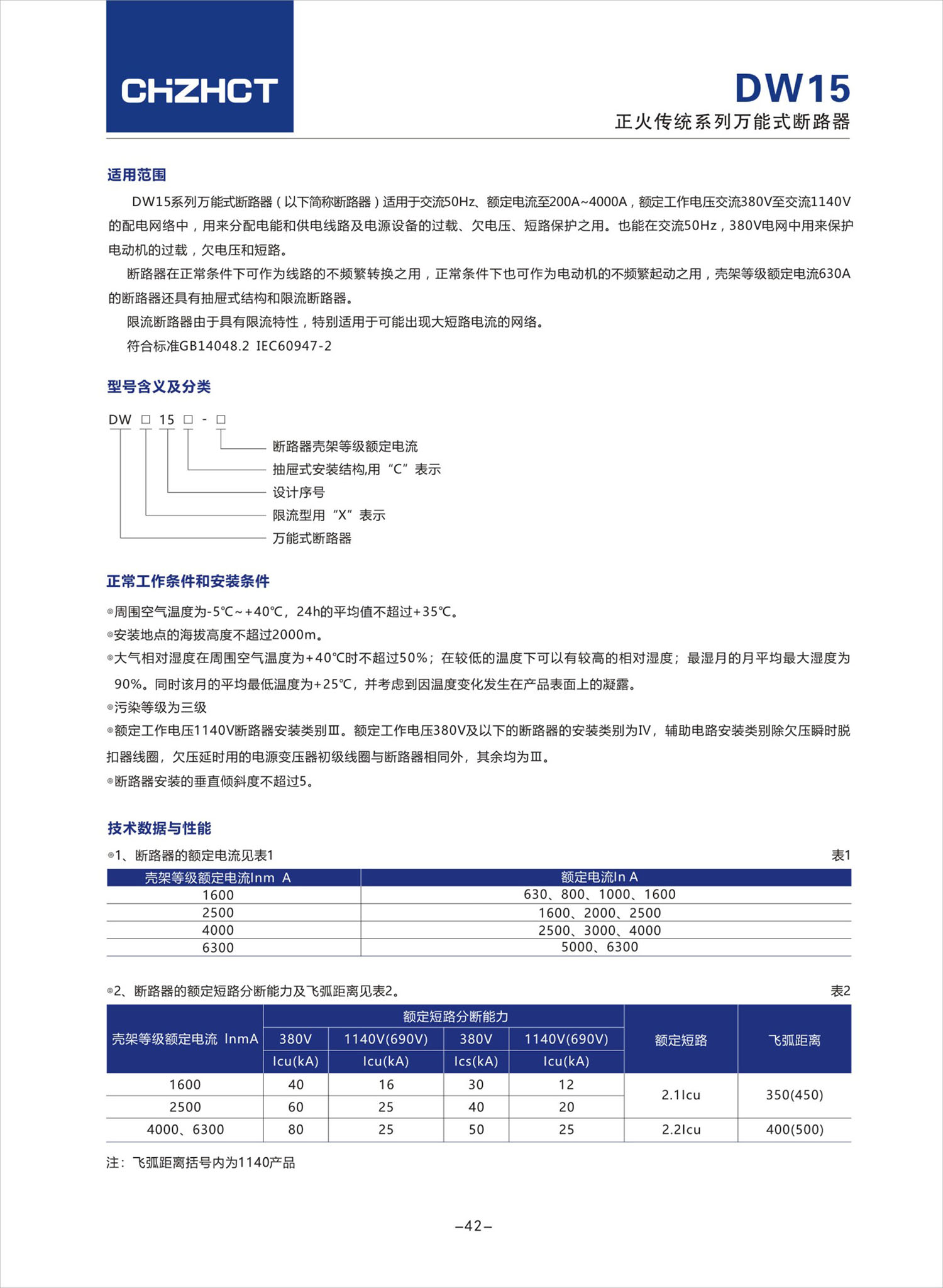 DW15 系列万能式断路器产品说明书