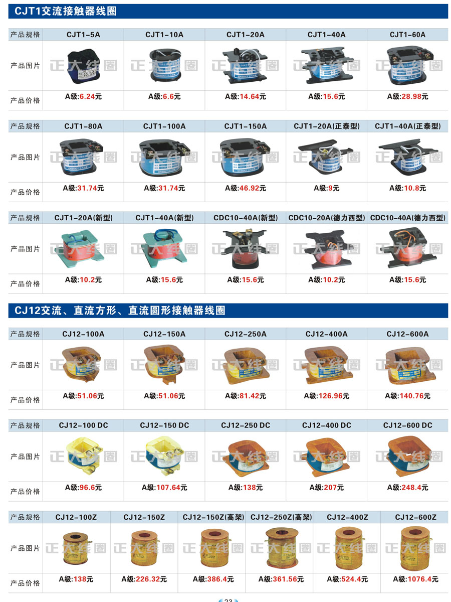 CJT1交流接触器线圈、CJ12交流、直流方形、直流圆形接触器线圈