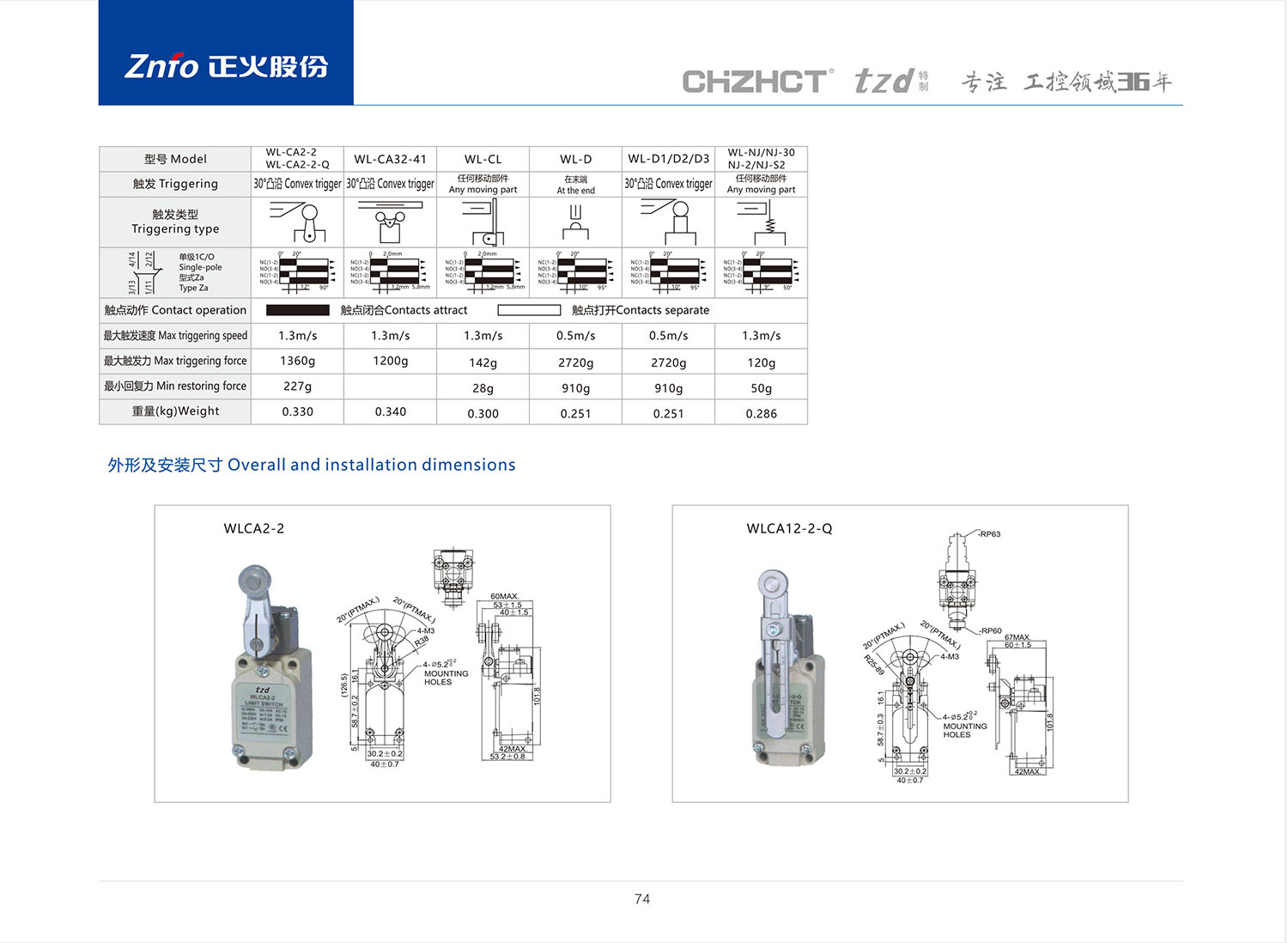 WL 限位开关产品说明书