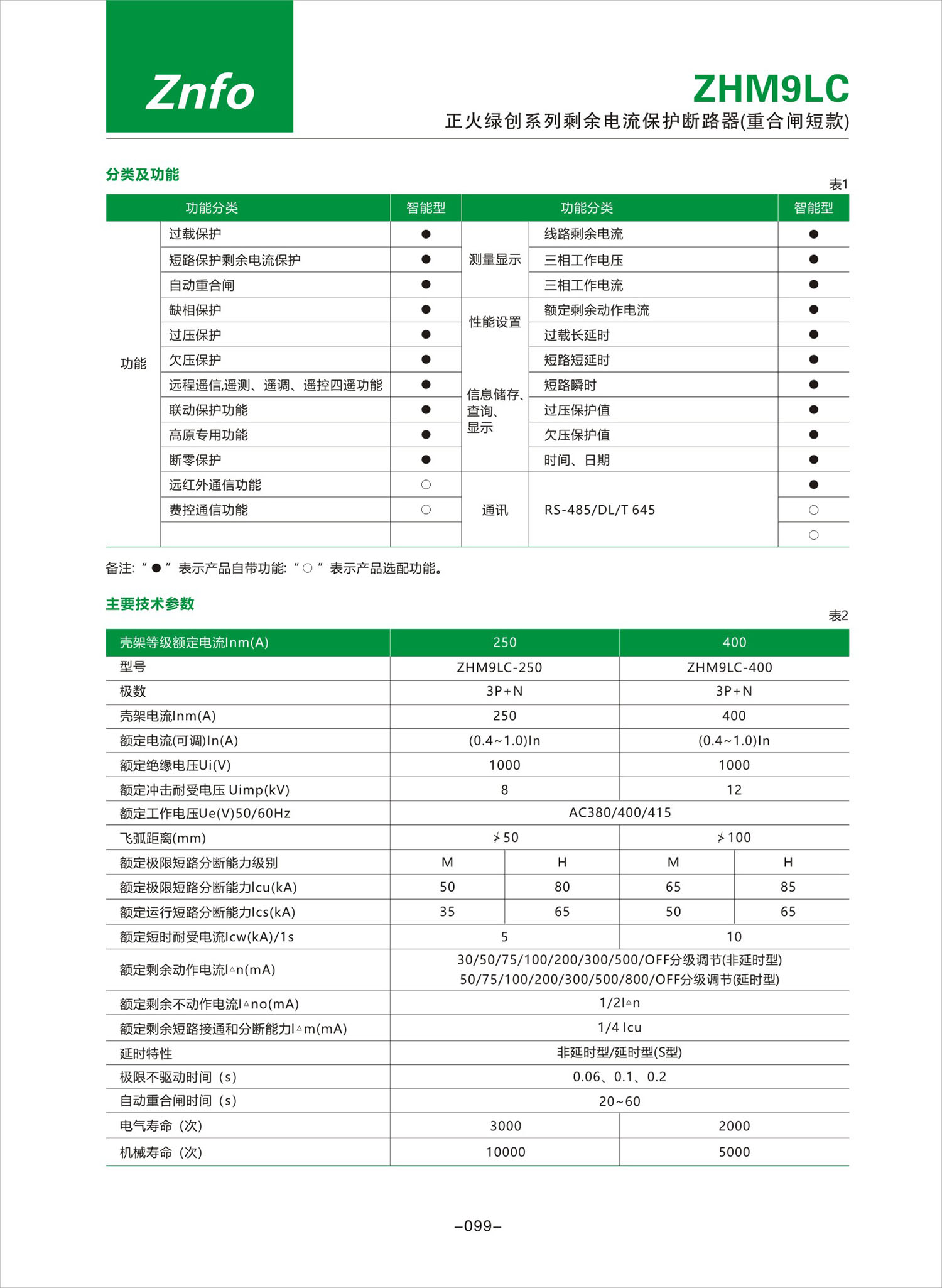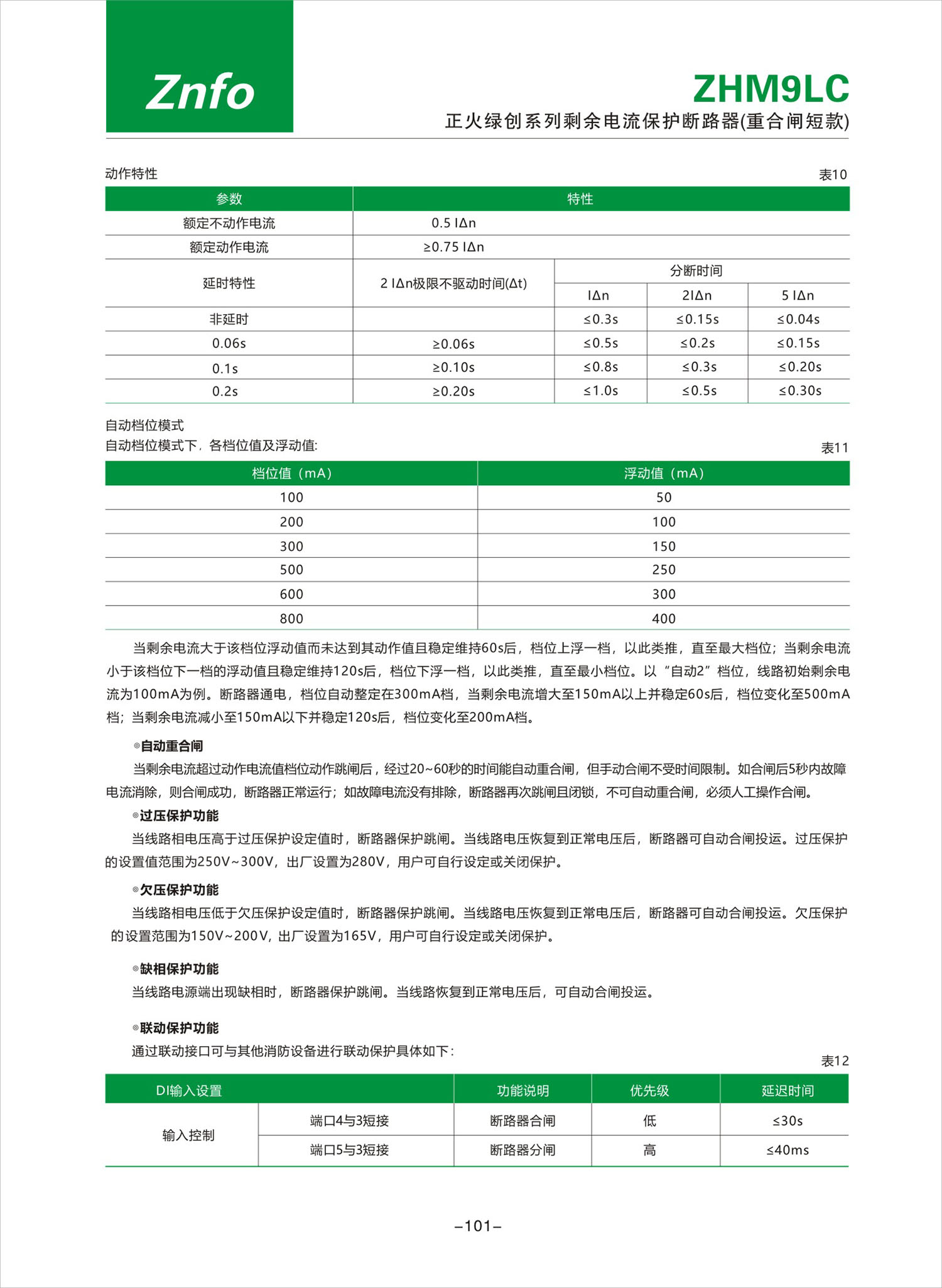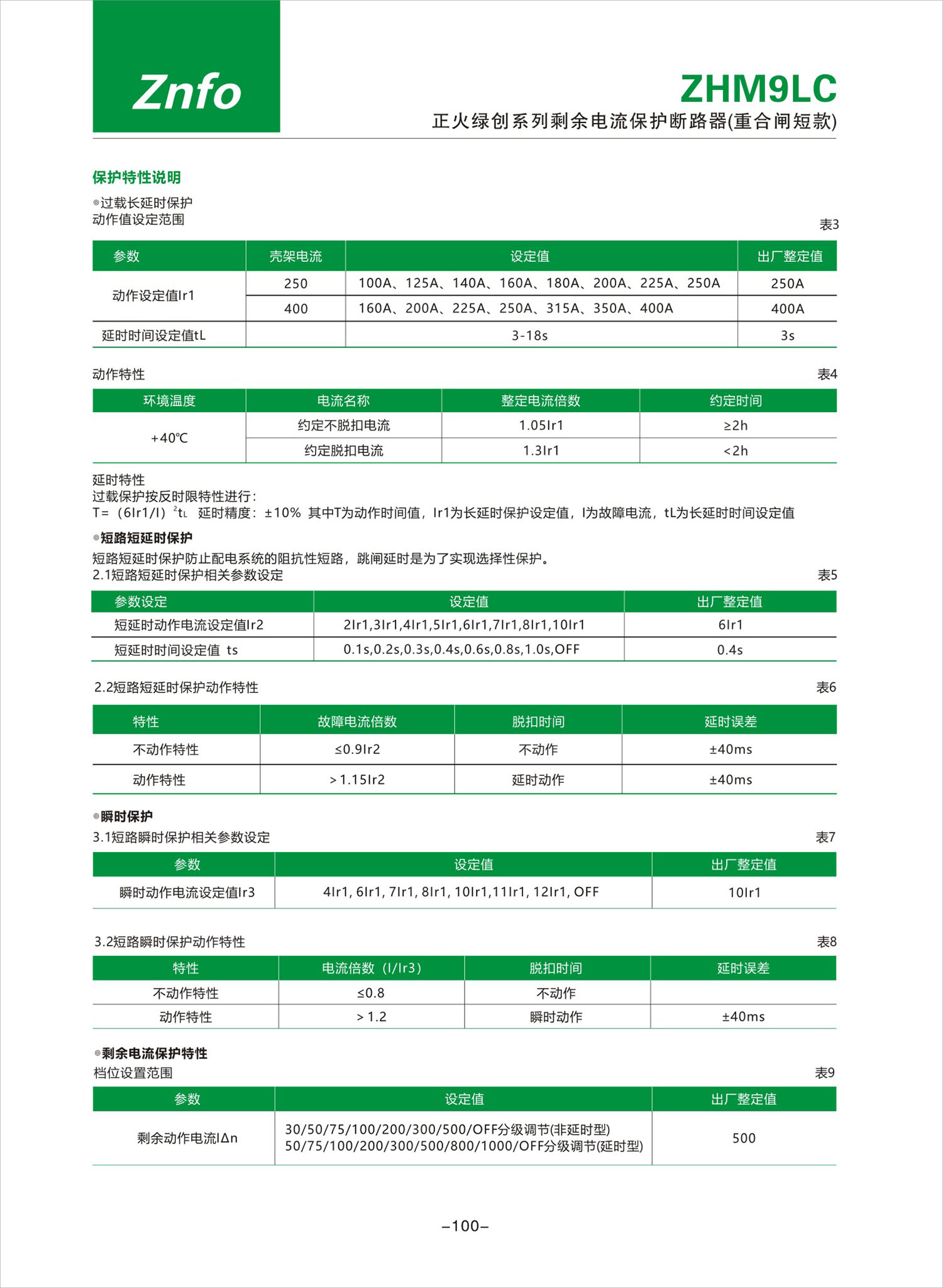 ZHM9LC系列剩余电流保护断路器(重合闸短款)产品说明书